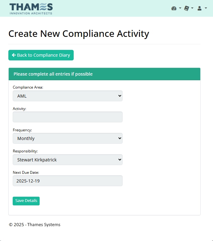 The Compliance Diary within the T100 system transforms passive record-keeping into an active and auditable governance framework, ensuring your firm is always prepared for regulatory scrutiny.